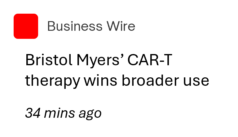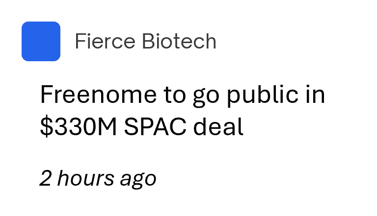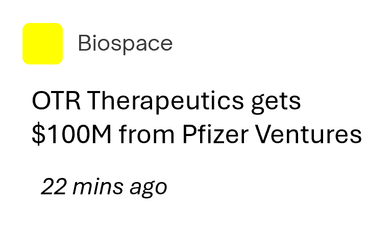 RAVYN monitors the biotech news across all major industry sources, continuously evaluating relevant signals against your mapped profile.